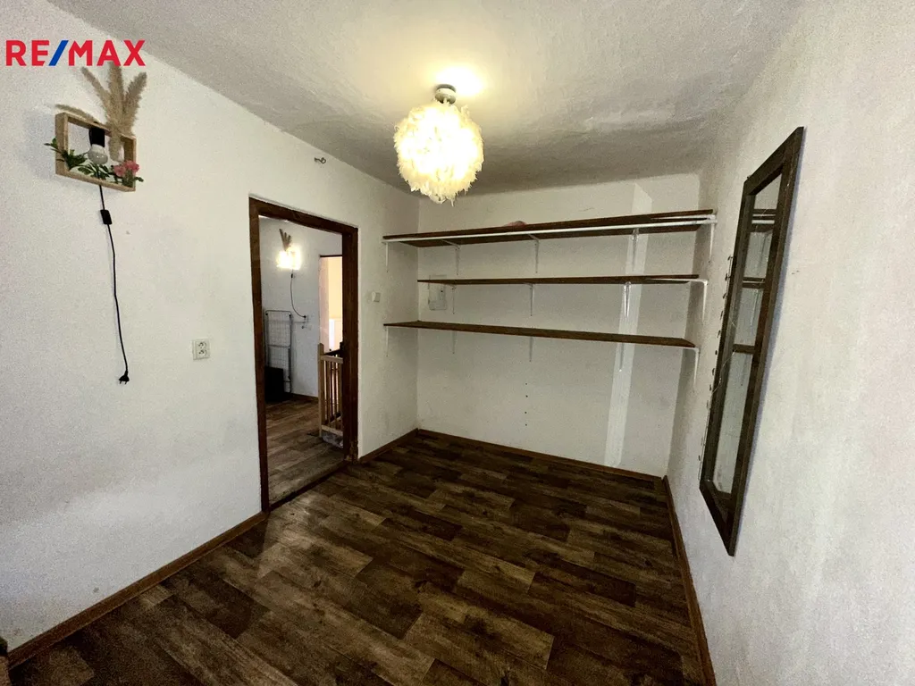 Dispozice domu je vstupní chodba, koupelna s toaletou, prostorná kuchyň, obývací pokoj s krbem a ložnice — tedy praktické a pohodlné zázemí od první chvíle. Celková podlahová plocha obytné části je cca 40 m², ale skutečnou přidanou hodnotou je podkroví o dalších cca 40 m². Podkroví je zcela čisté a vysoké, s výraznými trámy, které umožňují vytvořit plnohodnotné obytné místnosti dle vlastních představ. Pozemek o celkové ploše 624 m2 zahrnuje za domem zahradu, kde si můžete užívat chvíle mimo ruch okolí.