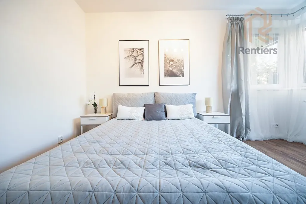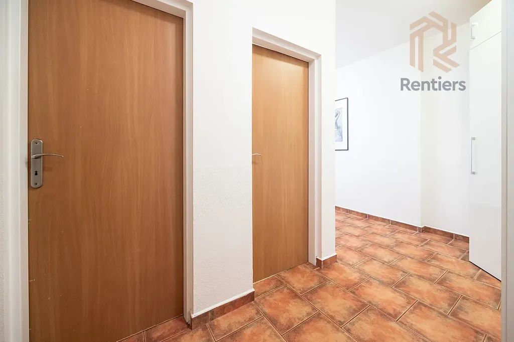 K prodeji nabízíme moderní byt 2+kk o výměře 66,9 m², s prostornou soukromou zahradou o velikosti cca 100 m² a garážovým stáním v klidné části Prahy, v ulici Domanovická 2480.