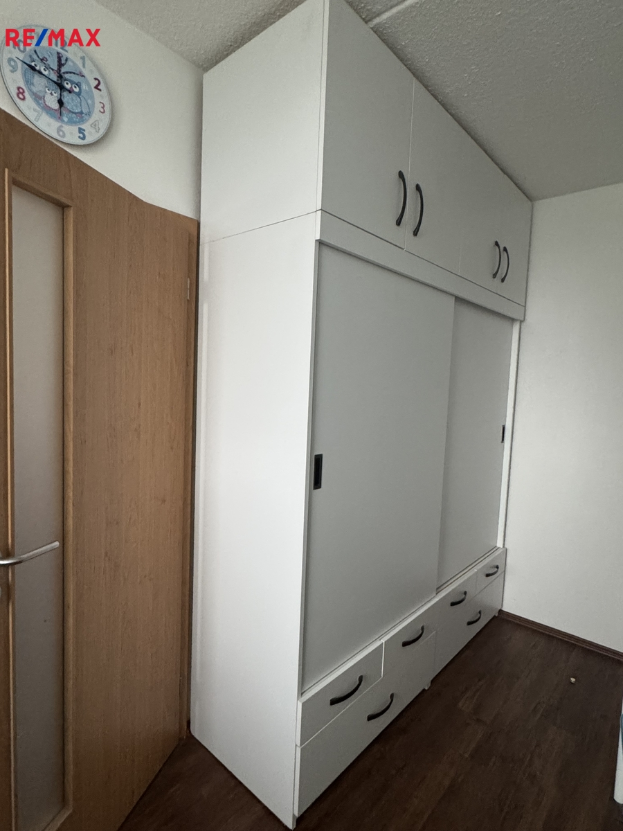 Byt je připraven ihned k nastěhování. Vybavení, které je součástí pronájmu bytu - obývací stěna, sedací souprava, kuchyňská linka, plynový sporák, lednička, mikrovlnná trouba, myčka, pračka, stůl a 4 židle, dvě vestavné skříně, poschoďová postel, komoda a manželská postel v ložnici.