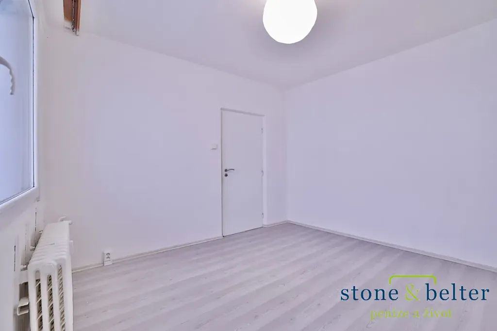 Dispozice zahrnuje tři samostatné NEPRŮCHOZÍ pokoje, kuchyň s jídelním koutem, prostornou chodbu s vestavnými skříněmi, koupelnu s vanou a samostatné WC.