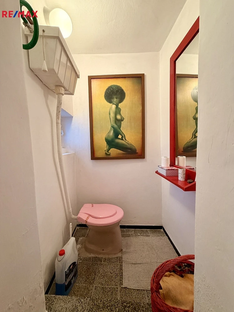 Zděná budova je ve velmi dobrém stavu, střešní krytina byla v průběhu minulých let nahrazena z části novou (plech, IPA, zůstaly i pálené tašky). Okna jsou původní, dřevěná kastlíková, v dobrém stavu. Podlahy v obytných místnostech jsou betonové + koberec, v kuchyni, chodbě a wc je dlažba. O vytápění se starají krbová kamna v obývacím pokoji a el. přímotopy + infrapanel ve zbytku domu. Voda je obecní, k dispozici je i studna, kanalizace řešena jímkou.