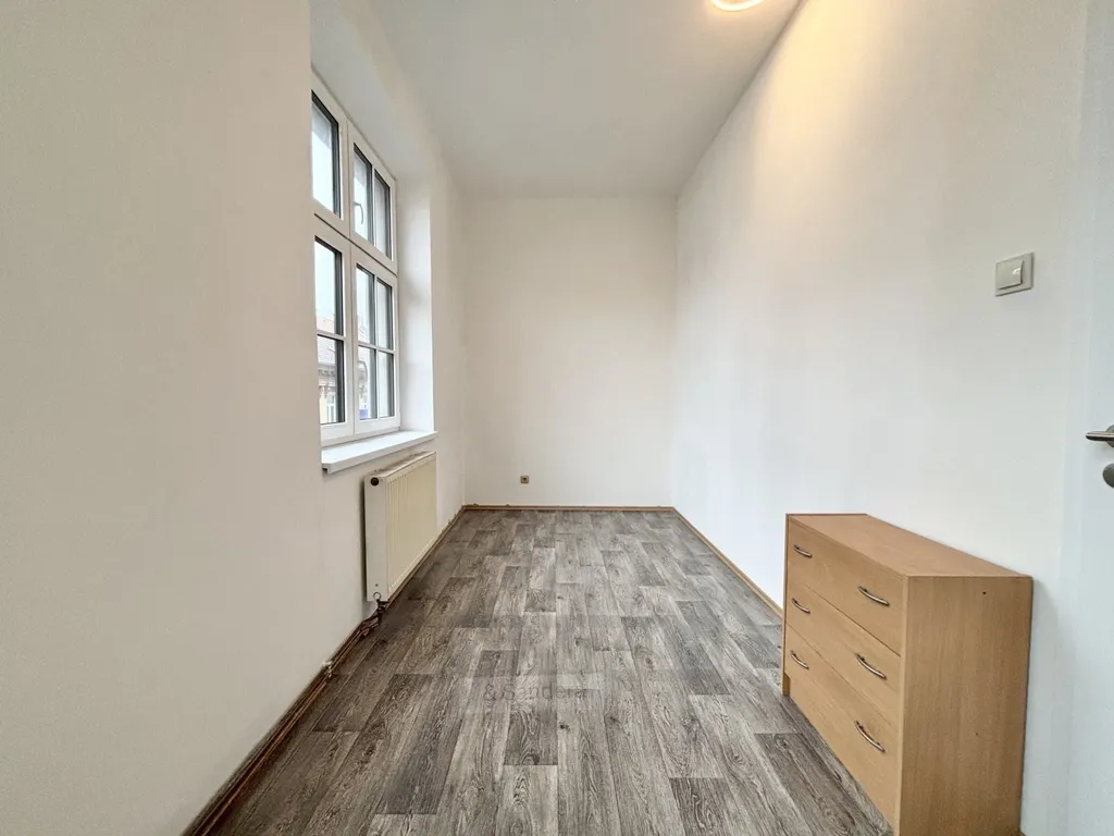 Do bytu vstoupíte stylovými dvojkřídlými dveřmi, které vás zavedou do praktické předsíně s věšákem a dostatkem místa pro botník. Z chodby je přístupná koupelna vybavená prostornou vanou a umyvadlem se zrcadlem, toaleta je pak prakticky umístěna samostatně. Následuje velmi prostorná kuchyň, kde kromě kuchyňského koutu oceníte také dostatek místa pro jídelnu a velké úložné skříně. Kuchyňská linka je vybavena spotřebiči – novým elektrickým sporákem s troubou, myčkou a digestoří – a je zde připraven i prostor pro pračku. Na kuchyň navazuje velkorysý obývací pokoj, který díky své velikosti umožní vytvořit komfortní obytný prostor. Za obývacím pokojem se nachází samostatná, oddělená ložnice. Byt je vytápěn plynovým kotlem a radiátory.