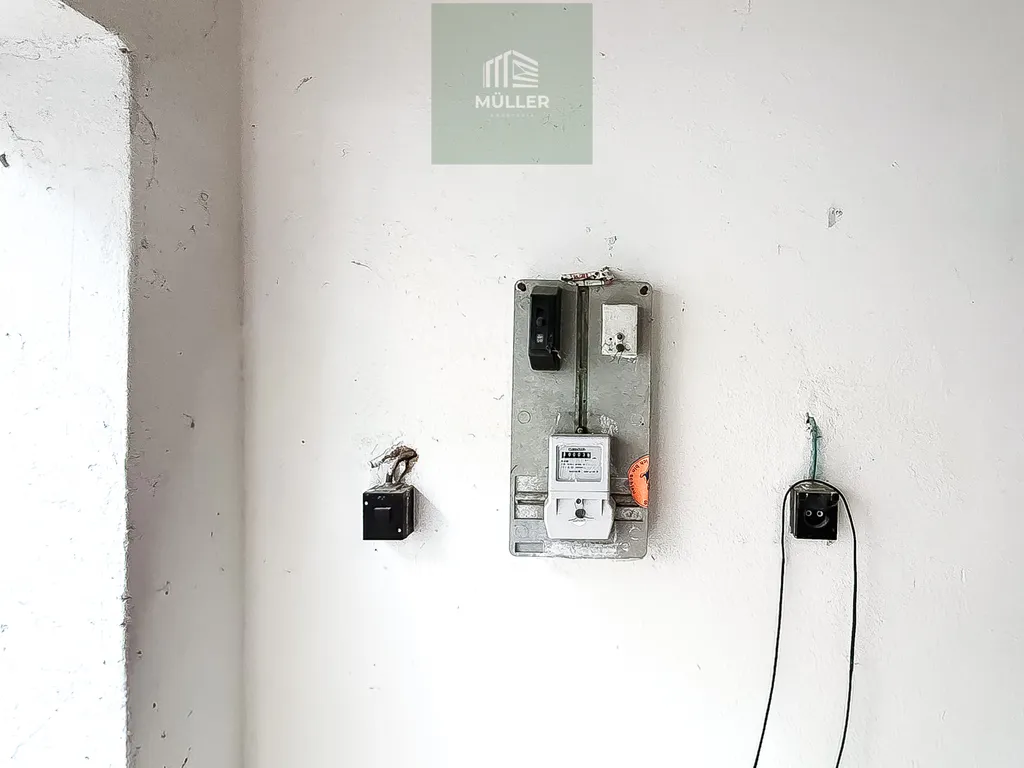 Garáž je napojená na elektřinu, elektroměr je umístěn uvnitř. Elektřina se převádí na nájemníka.