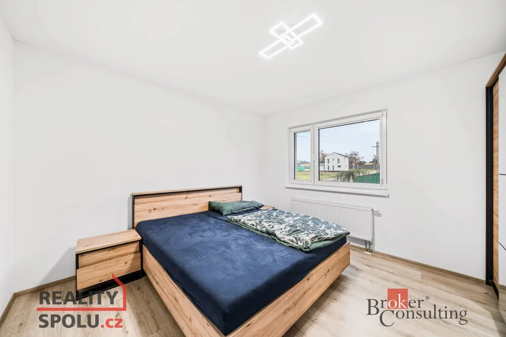 V patře se nachází útulná ložnice, dětský pokoj, pracovna a také šatna, které poskytují dostatek prostoru pro celou rodinu. Výhodou jsou dvě koupelny – jedna v přízemí a druhá v patře.