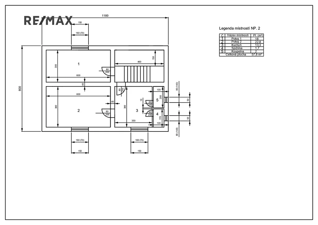 Ve druhém patře je započatá rekonstrukce, která nabízí možnost vybudování samostatné bytové jednotky s dispozicí pokojů 2+1 nebo 3kk.