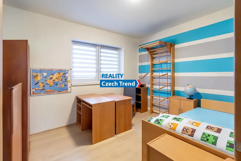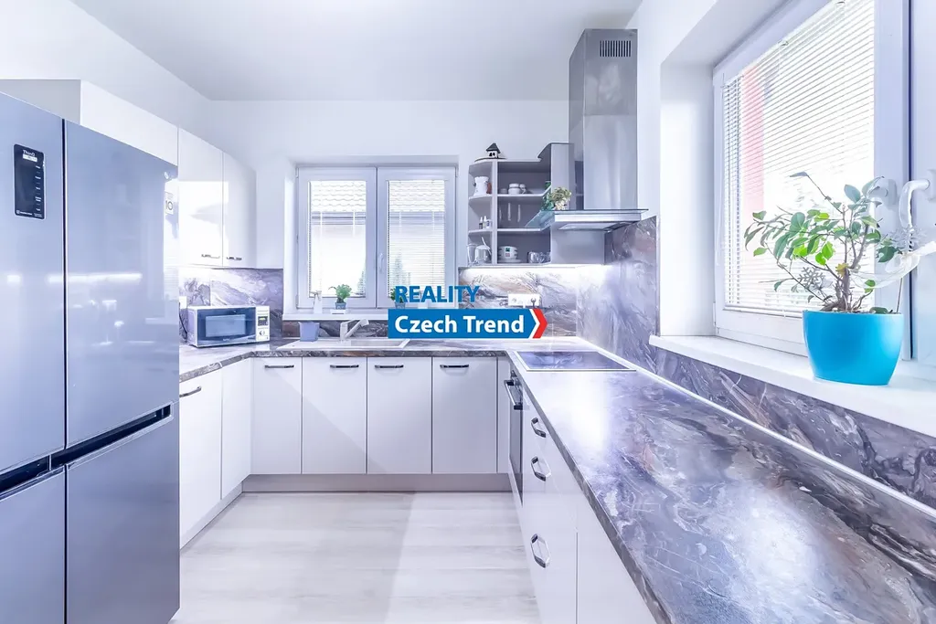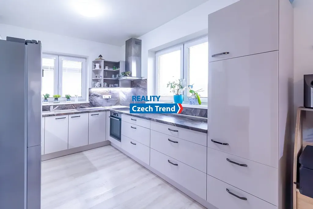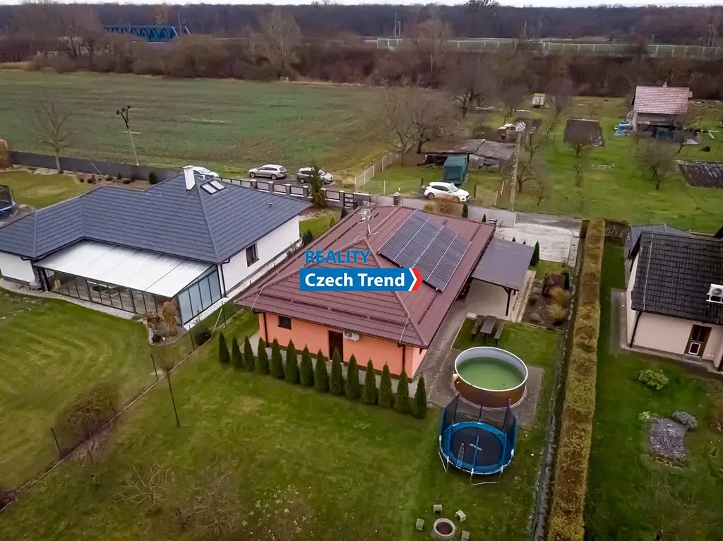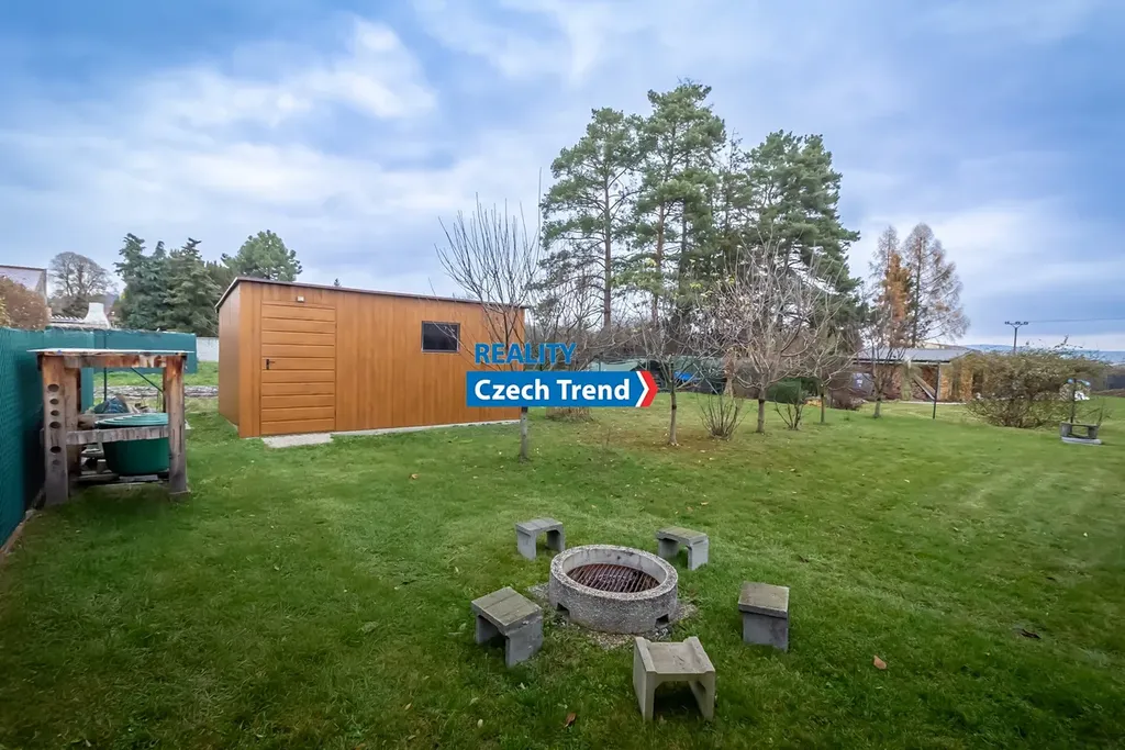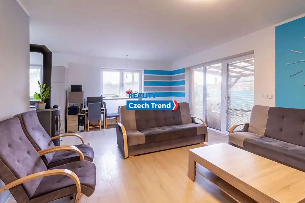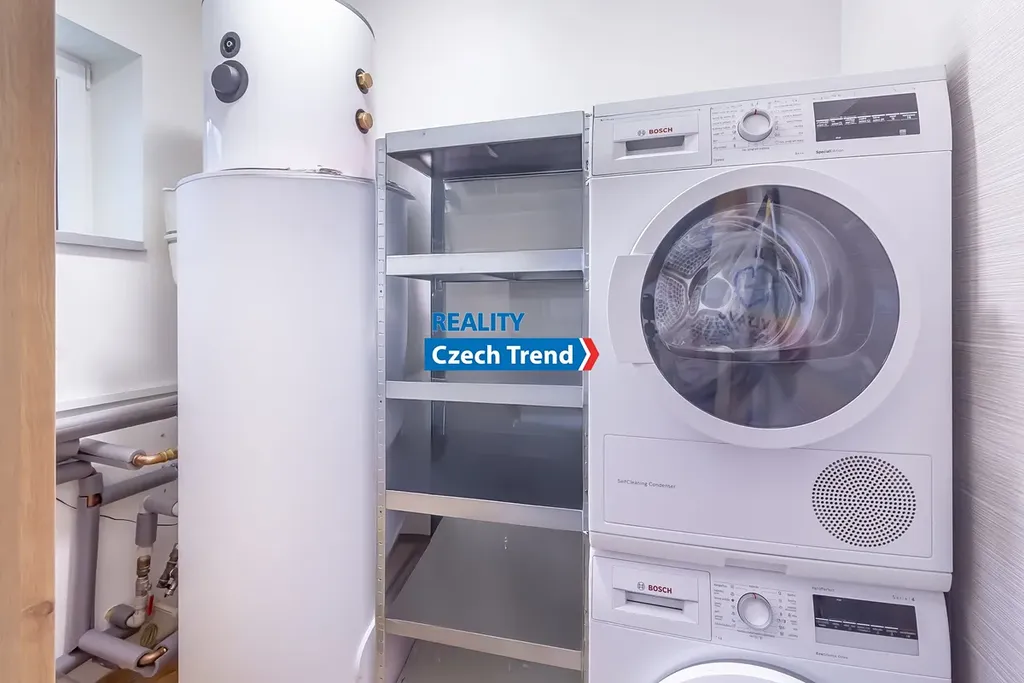 Kromě promyšlené dispozice se můžete těšit na celou řadu moderních prvků. Vytápění a ohřev vody zajišťuje tepelné čerpadlo (výkon 8kW, zn. Viessmann) v kombinaci s teplovodním podlahovým topením, což spolu s krbovými kamny zn. Romotop zaručuje nízké provozní náklady. Dalším upgradem úspory nákladů je fotovoltaika s výkonem 6,3 kWp, baterií 10kW zn. Growatt a 2x Wallbox. Kvalitní německá trojskla, zateplené základy, v podlaze polystyren, termoizolační ytong 45 cm, střecha zateplena 27 cm difúzní pěnou. Dalším nadstandardním prvkem je zahradní domek na pozemku v zadní části domu, o půdorysu 5 x 3 m, s ocelovou konstrukcí, zateplenou střechou a betonovou podlahou. Dům kolaudovaný před 8 lety je kompletně hotový a připravený k nastěhování.