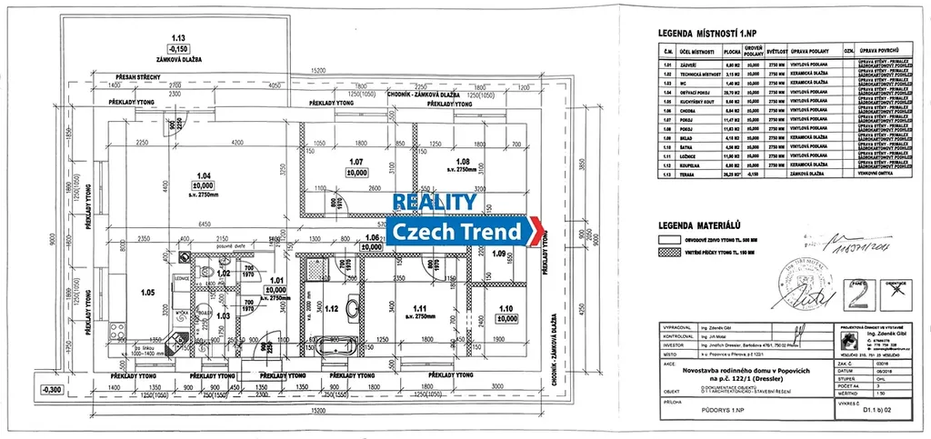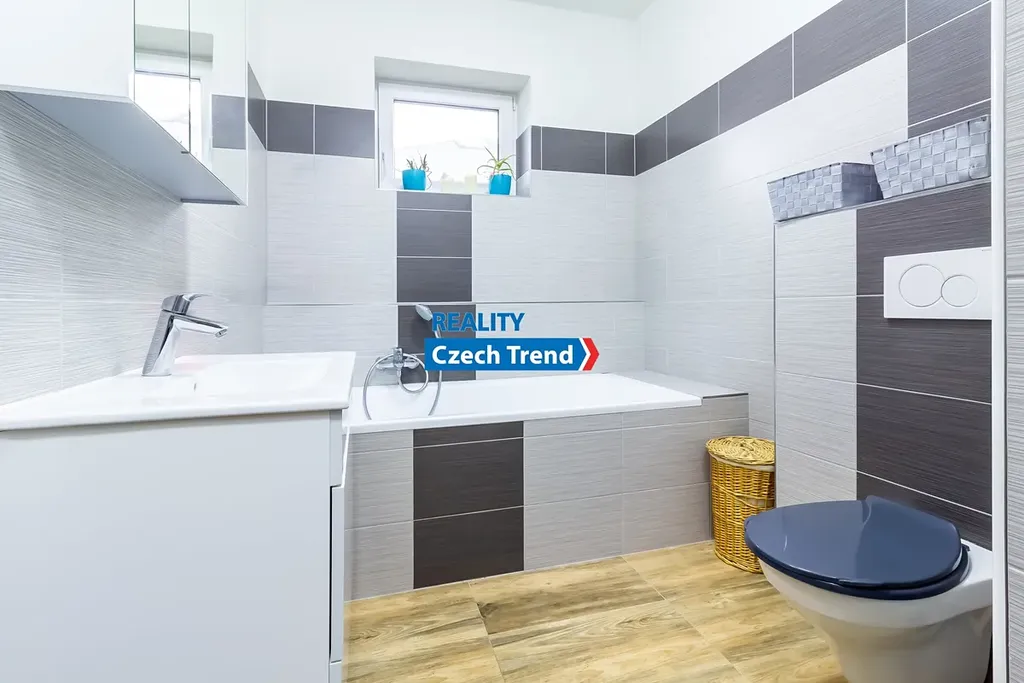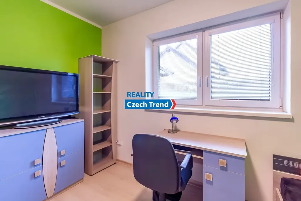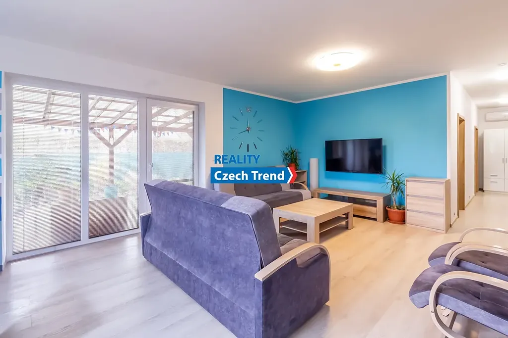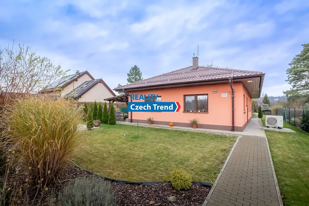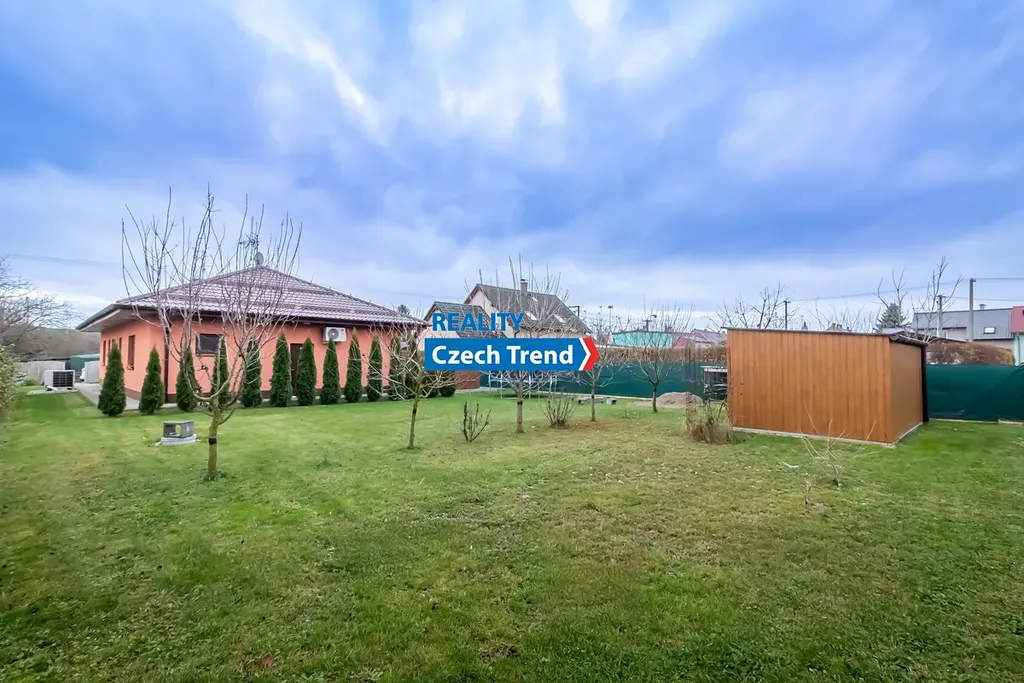 Nabízíme Vám k prodeji novostavbu bungalovu o dispozici 4+kk s podlahovou plochou 115 m2, s terasou a místem na parkování pro dva automobily. V domě se nachází prostorný obývací pokoj s kuchyňským koutem a vstupem na terasu a do zahrady, dětský pokoj, pokoj pro hosty možný využít jako další dětský pokoj nebo pracovnu, ložnice s šatnou, koupelna s vanou i sprchovým koutem. Ve vstupní chodbě je samostatná toaleta a technická místnost. Další technická místnost se nachází z druhé strany domu, do které je vstup ze zahrady. Pohodlné bydlení dále zajišťuje klimatizace zn. LG. Velkým plusem je možnost využití skladování věcí v prostorné půdě, na kterou je vstup po výklopném žebříku z chodby.