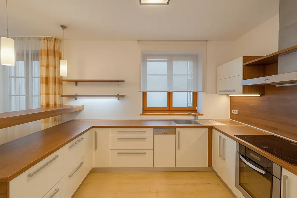 V patře jsou umístěny dvě samostatné kanceláře, z nichž jedna má přímý vstup na terasu. Dále zde najdete koupelnu s oknem, hydromasážní vanou a sprchovým koutem, která poskytuje komfortní zázemí pro personál či hosty. Součástí patra je také galerie využitelná jako menší kancelář, zasedací či relaxační zóna. Z galerie je vstup na terasu s krytým posezením a výhledem na historickou architekturu okolních budov – ideální místo pro neformální pracovní setkání.