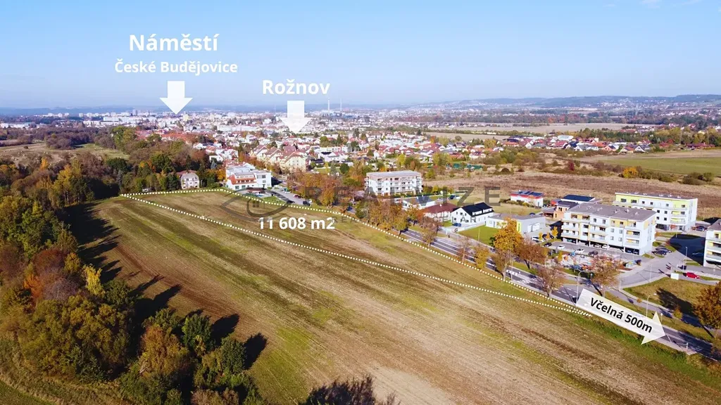 Nabízíme Vám prodej pozemku určeného k výstavbě rodinných domů o výměře 11.608 m2 v Českých Budějovicích, v místní části Rožnov.