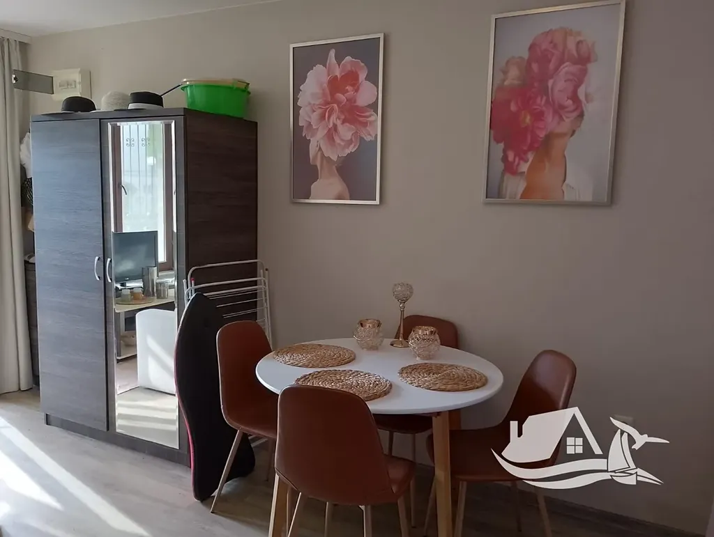 Obývací část plynule navazuje na kuchyňský kout – místo pro ranní kávu, večerní víno i jednoduché domácí vaření. Nechybí koupelna s toaletou a přímý výstup na soukromý balkon, odkud se otevírá pohled k bazénu a zeleným plochám. Tento byt je plně vybavený a připravený stát se vaším letním útočištěm, celoročním domovem nebo investicí do budoucna.