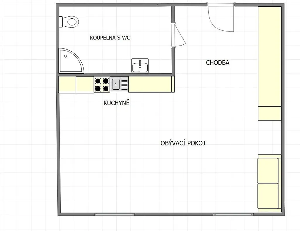 Byt je vybavený kuchyňskou linkou, ledničkou a digestoří.