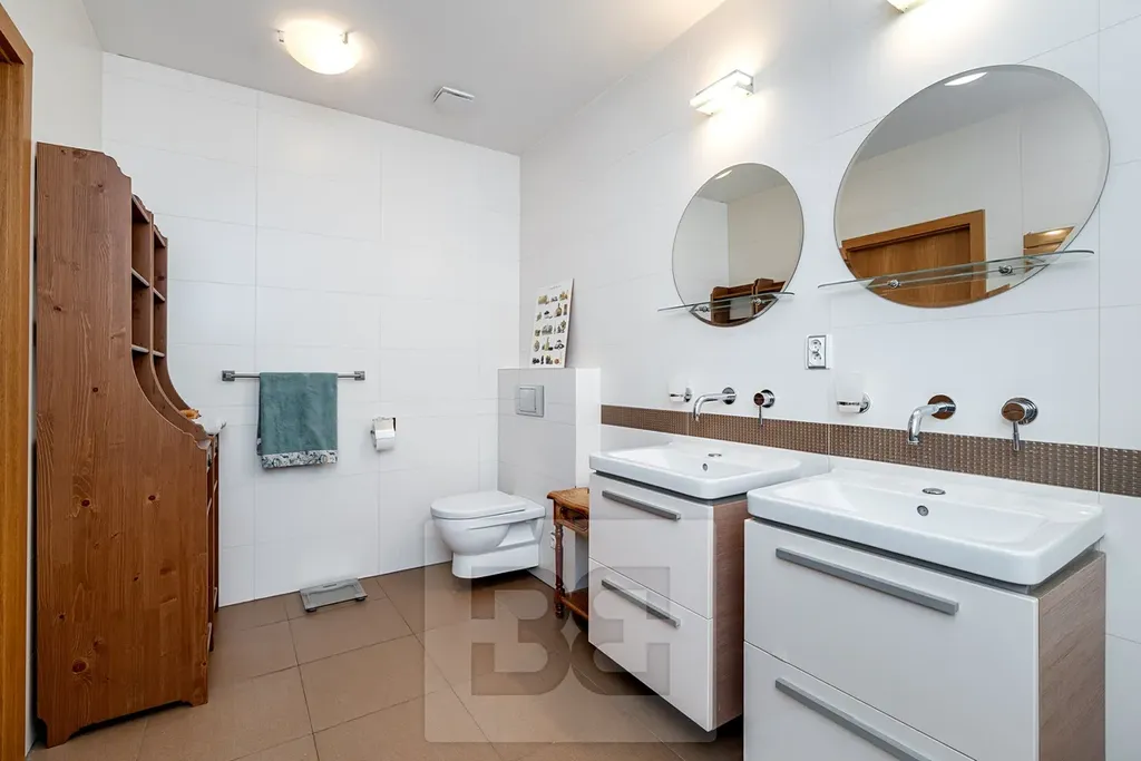 Exkluzivně nabízíme k prodeji velmi světlý byt 4+kk situovaný ve 3. patře (posledním) novostavby s výtahem v centru Průhonic, ul. Uhříněveská s výhledem na místní zámek. Prostorný, slunný byt o celkové ploše 126m2 se skládá z obývacího pokoje, kde je místo na kuchyňskou linku, dále pak ze tří ložnic, koupelny s vanou, WC, samostatné toalety a ze vstupní haly. Byt je velice vzdušný a světlý díky střešním oknům ve všech místnostech. Součástí vybavení bytu jsou vestavěné skříně, klimatizace v každém pokoji, vstupní video-telefon.