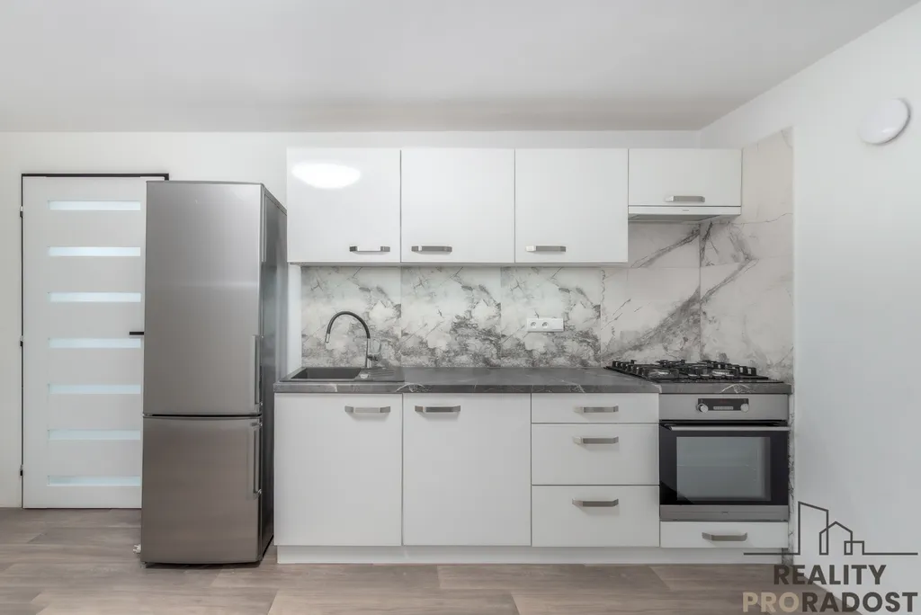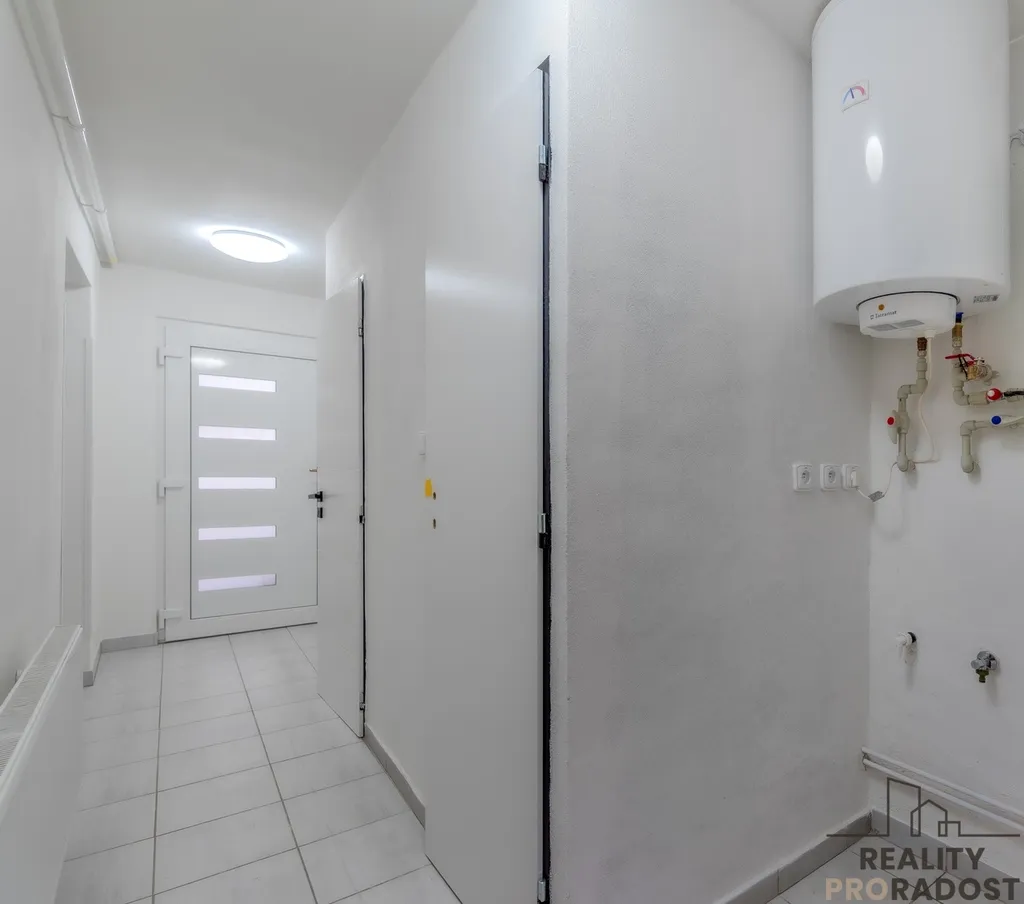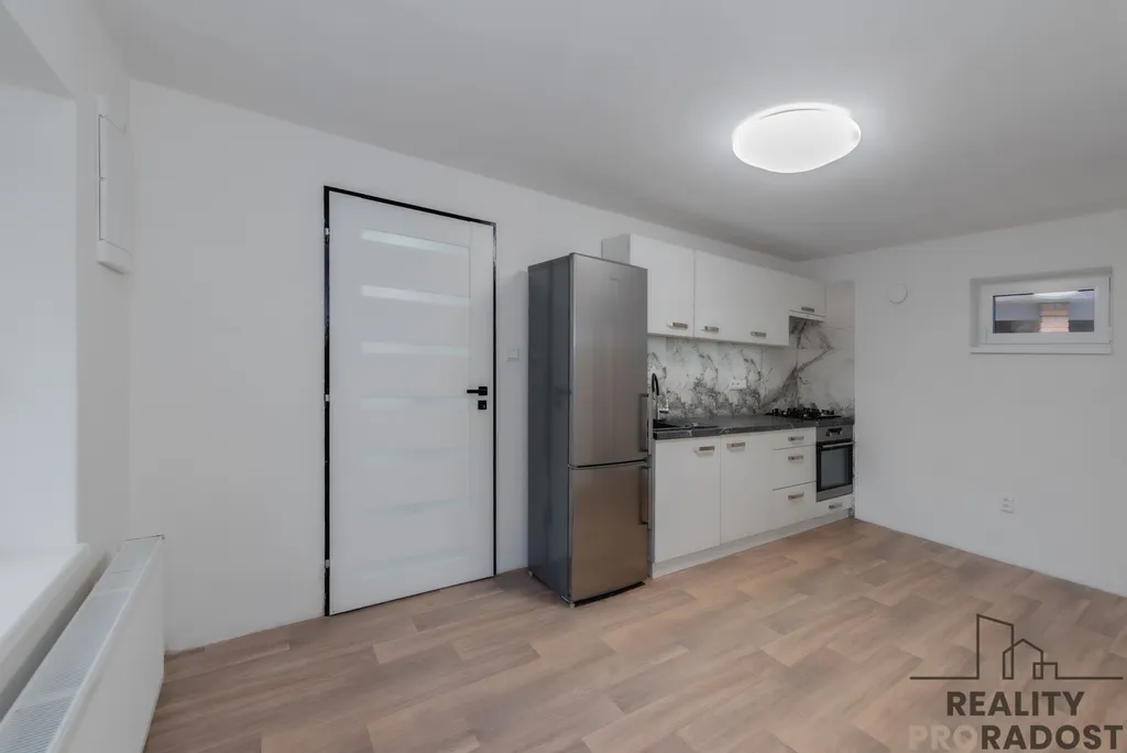 Jedná se o dům s novou šedou fasádou a soklem obloženým kamenem, který stavbě velmi sluší. Dům má nové plastové vchodové dveře a okna s trojskly a nachází se v klidné uličce v Moravském Krumlově – Rakšicích. Parkování je možné přímo před domem nebo na obecním pozemku.