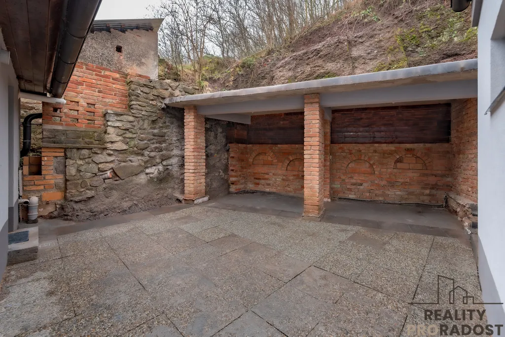 Dvůr zve k posezení. Výzdobu si můžete dotvořit dle svých představ. Po schůdcích vystoupáte na pochozí střechu (železobeton), kde může vzniknout další posezení nebo prostor pro pěstování zeleniny ve vyvýšených záhonech a truhlících.