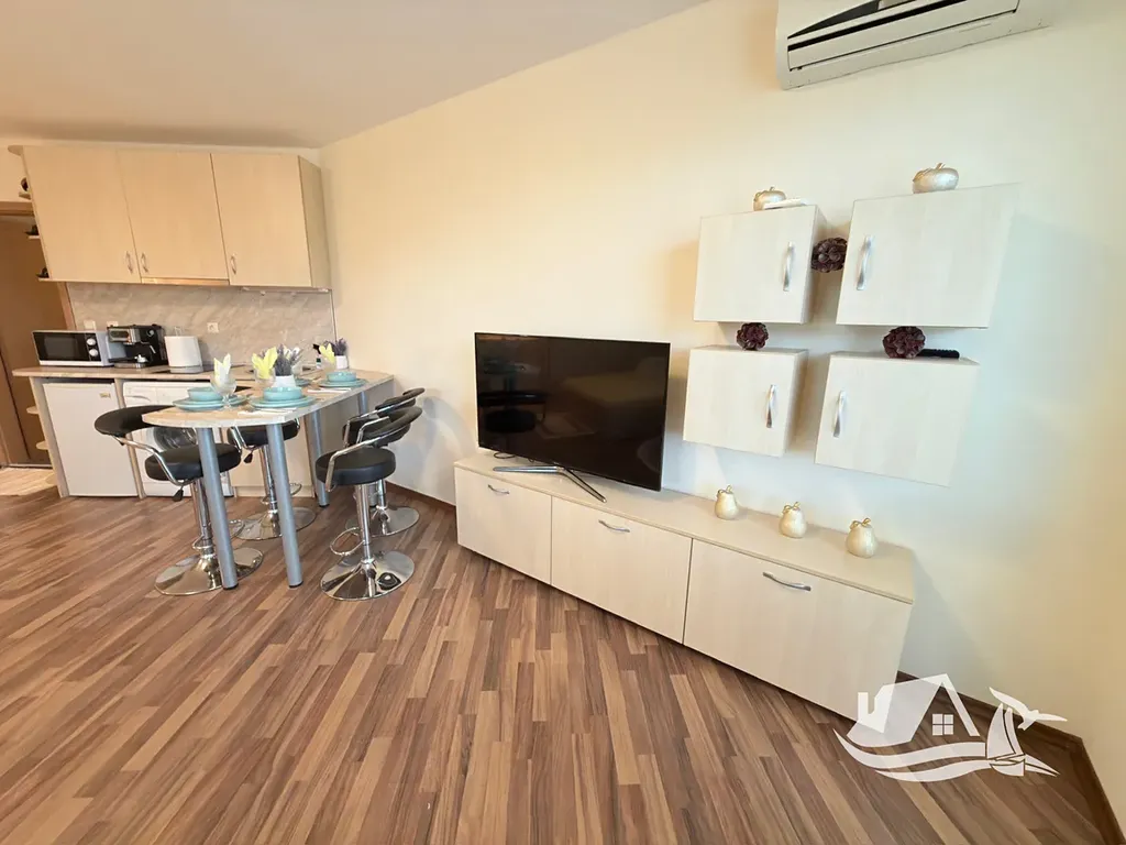 Studio se nachází jen 600 metrů od široké písečné pláže, přístupné pohodlnou procházkou. Severní část Slunečného pobřeží je vyhledávaná pro svou kombinaci klidu a dostupnosti služeb. V blízkosti najdete vše, co potřebujete pro každodenní život i dovolenou: