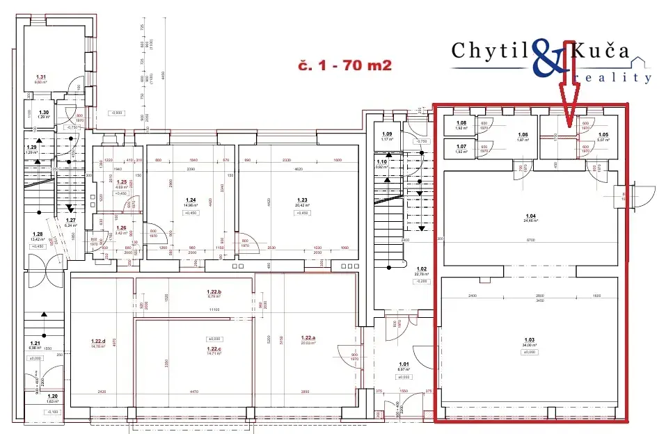 Prostor č. 1 - Obchodní prostory ( 70 m2 )