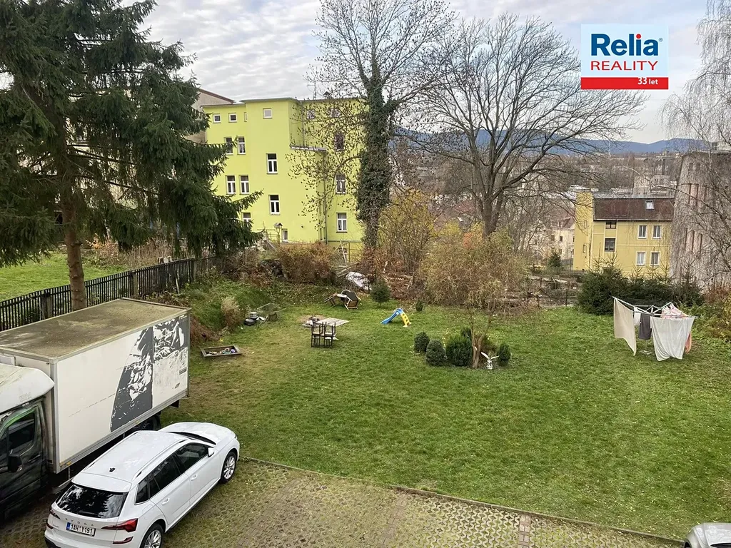 Výhodou je užívání zahrady (která je u domu), kde je venkovní sezení, ohniště, sušák na prádlo.