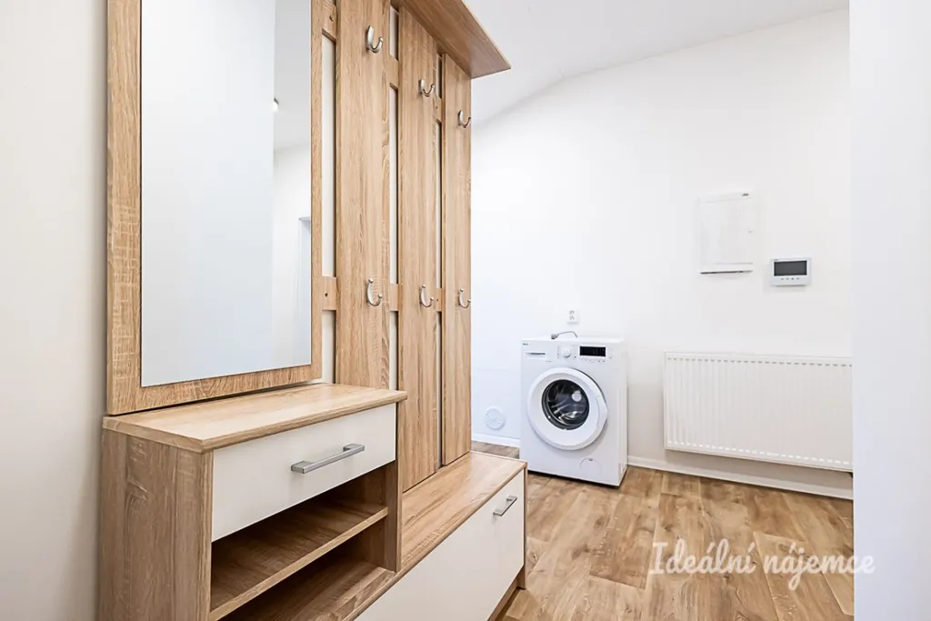 Byt se nabízí plně vybavený. Kuchyňský kout disponuje lednicí s mrazákem, myčkou, elektrickou troubou, varnou deskou a mikrovlnnou troubou. Obývací část je zařízena jídelním stolem s židlemi, pohovkou, komodou a TV skříňkou. Součástí ložnice je postel, komoda a skříň. V koupelně je sprchový kout, umyvadlo, zrcadlo, koupelnová skříňka a WC. V předsíni je věšák, botník a pračka.