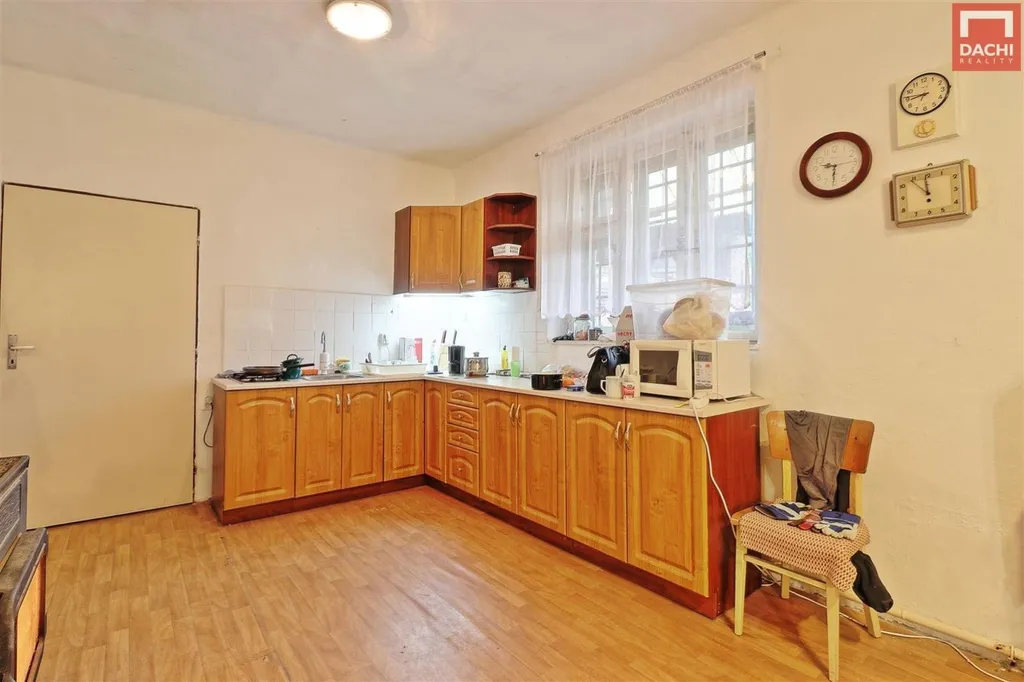 Nabízíme k prodeji řadový, jednopodlažní a částečně podsklepený, rodinný dům, který byl zemědělskou usedlostí. Nemovitost se skládá z bytové jednotky 3+kk, velké stodoly... nyní užívána i jako garáž, dílny a menších skladů. Je v původním, udržovaném, plně funkčním stavu, ovšem určená k rekonstrukci. Střešní krytina je plechová, část z eternitových šablon a část z PVC vlnovky. Podlahy jsou původní prkenné bez hydroizolace, betonové, PVC, keramická dlažba. Okna jsou dvojitá dřevěná, jednoduchá ocelová, dveře jsou původní dřevěné. Dům, ani střecha jsou nezateplené . Dům je napojen na všechny inženýrské sítě, el, plyn, obecní voda, kanalizace, vlastní studna. Na dvoře se nachází i zděná dílna, nepodsklepená, jednopodlažní se sedlovou střechou, do které již trochu zatéká. Vrata jsou dřevěná, okno dřevěné kastlové a ocelové jednoduché. V dílně nejsou inženýrské sítě. Pozemky jsou dlouhodobě využívány jako zahrada a jsou osázeny mnoha ovocnými ( jabloně, švestky) i okrasnými keři ( ibišek, rododendron, magnolie) i stromy. Nacházejí se zde i více než stoleté stromy ( jasan, ořech ) celkem cca 70 stromů a keřů. Především zahrada nabízí a poskytuje úžasné soukromí, možnost relaxace a klidu.