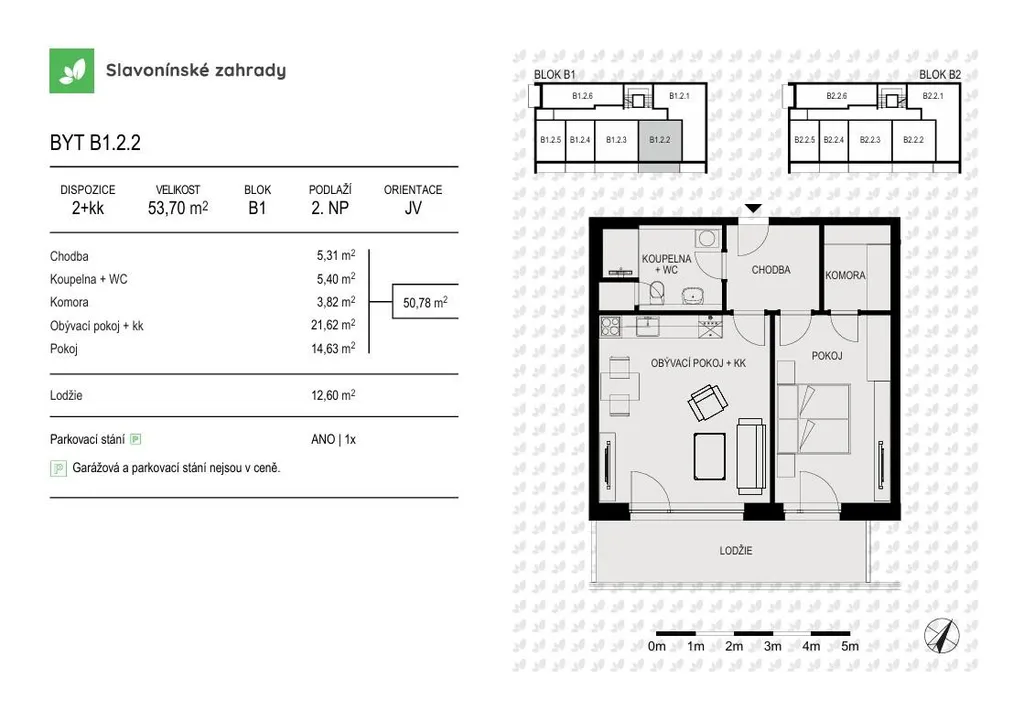 Nabízíme prostorný byt s označením B1.2.2 o dispozici 2+kk, podlahové ploše 53,5 m2 v 2. NP, s balkónem 11,4 m2 ideální pro páry nebo jako investiční bydlení.