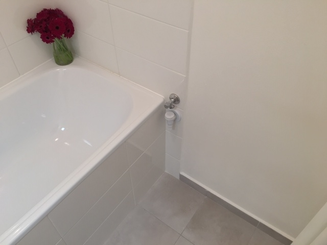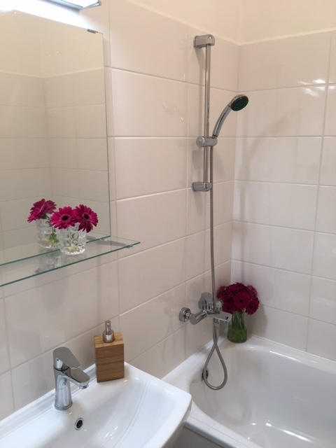 Koupelna s vanou a umyvadlem s možností připojení pračky, toaleta je odděleně. Kuchyňská linka je opatřena plynovým sporákem a elektrickou troubou s možností připojení pračky nebo myčky.