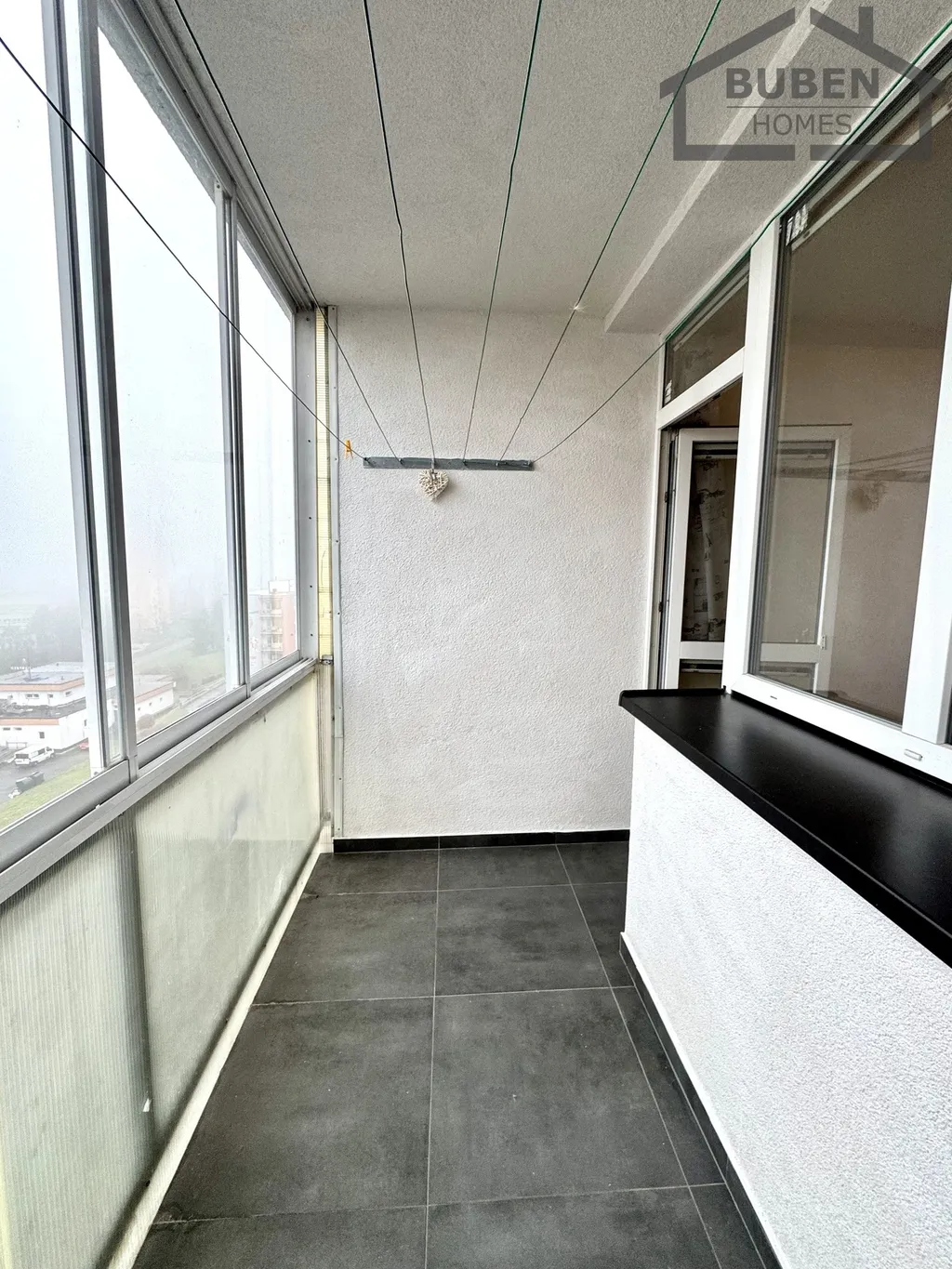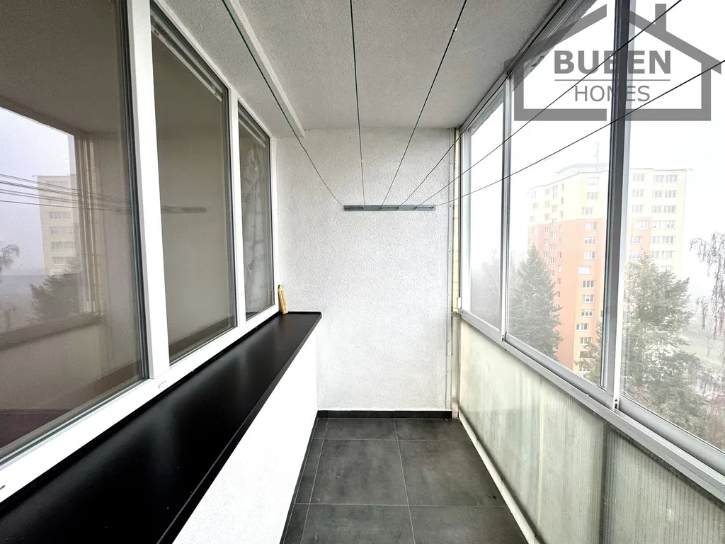 Byt se nachází ve 7. patře bytového domu. Podlahová plocha bytu činí 69 m2. Byt tvoří vstupní chodba, koupelna se sprchovým koutem, samostatné WC, kuchyň, prostorný obývací pokoj se vstupem na zasklenou lodžii, ložnice (10,90 m2) a šatna.