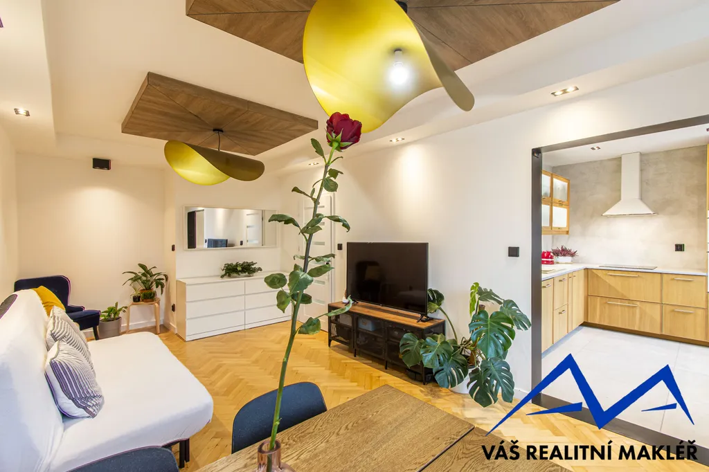 Byt prošel kompletní, velmi vkusnou a kvalitní rekonstrukcí, díky které nabízí stylové a funkční bydlení bez dalších investic.