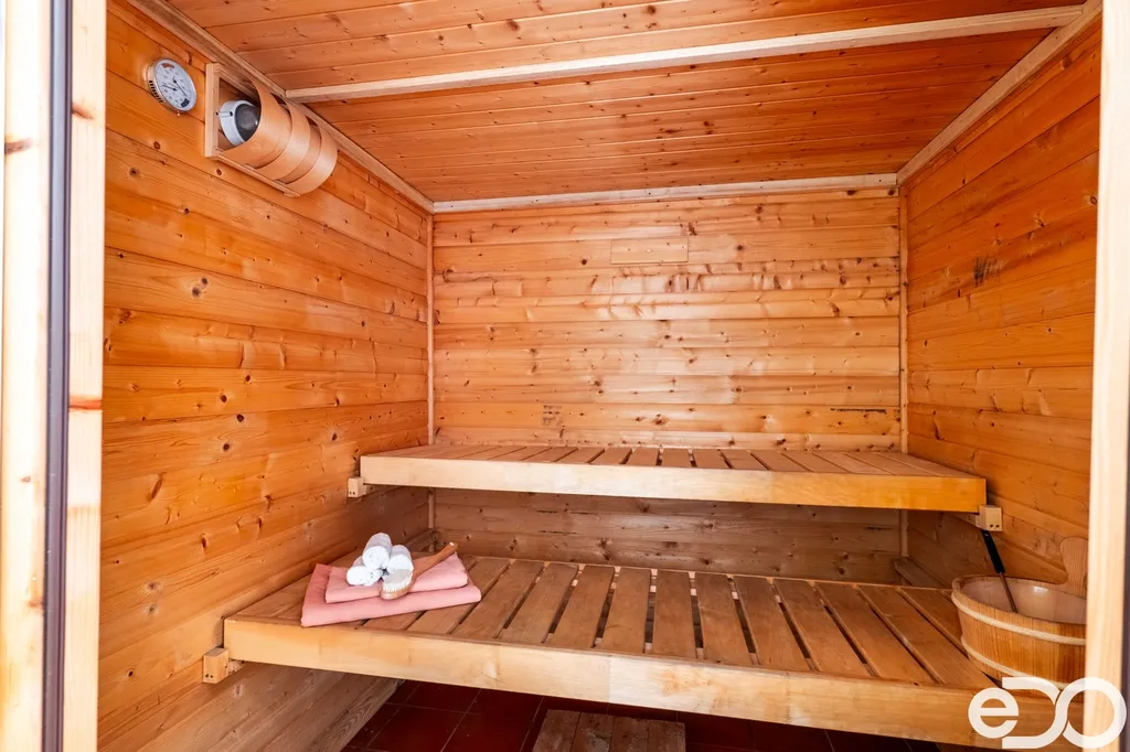 • terasa se saunou a kamenným grilem