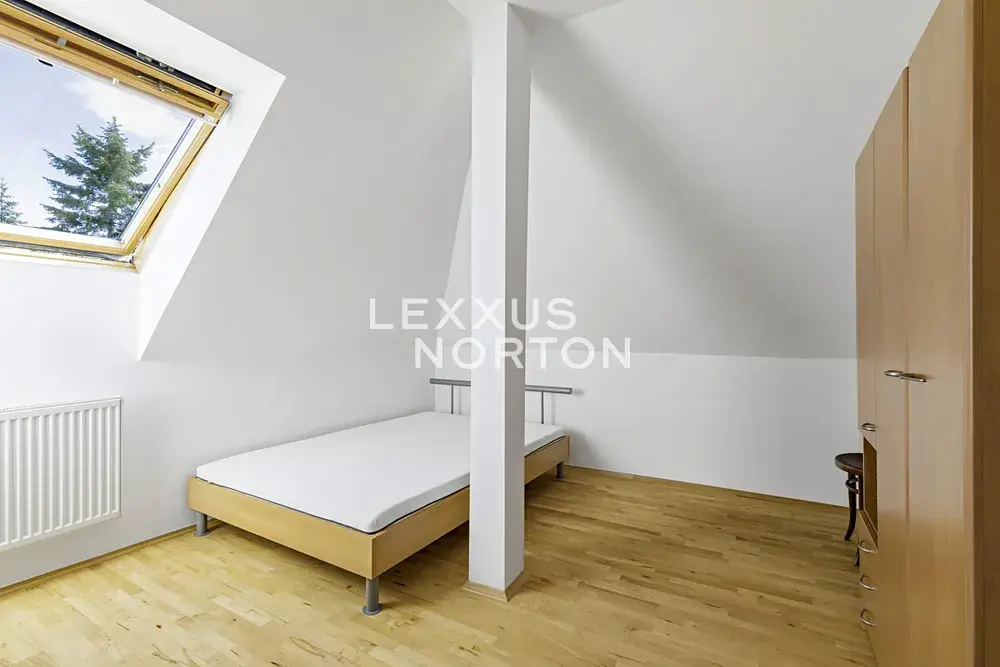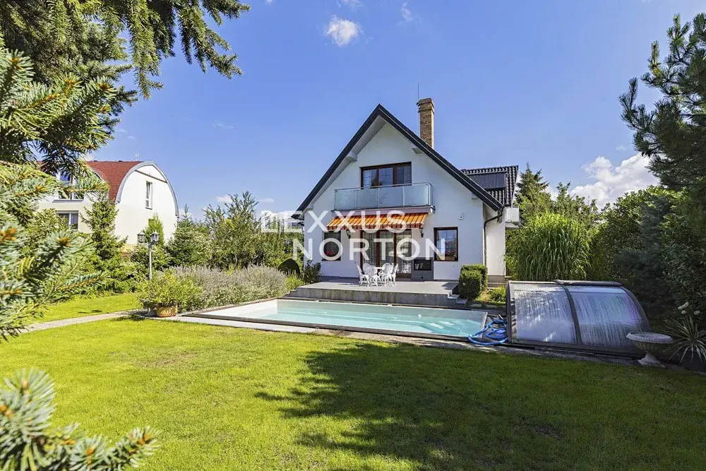Rodinný dům 7+1 k pronájmu o celkové ploše 253 m2 má tři podlaží a nabízí komfortní rodinné bydlení. V 1. nadzemním podlaží se nachází vstupní předsíň, prostorný obývací pokoj s jídelní částí a přímým vstupem na terasu, samostatná kuchyně, dvě ložnice, koupelna, samostatná toaleta pro hosty a technická místnost. Z obývacího pokoje je možné vyjít přímo na terasu a do zahrady, kde se nachází bazén. Ve 2. nadzemním podlaží je umístěn druhý obývací pokoj využitelný také jako herna, který má vstup na balkon. Dále zde najdete dvě ložnice, pracovní kout, koupelnu a praktický úložný prostor. Suterén domu nabízí rozsáhlé úložné prostory, sprchu, toaletu a garáž. Dům je nízkonákladový a vybavený úsporným topným systémem se solárními kolektory. Součástí nemovitosti je vzrostlá, pečlivě udržovaná zahrada s ovocnými stromy, která poskytuje dostatek soukromí i příjemný prostor k relaxaci.