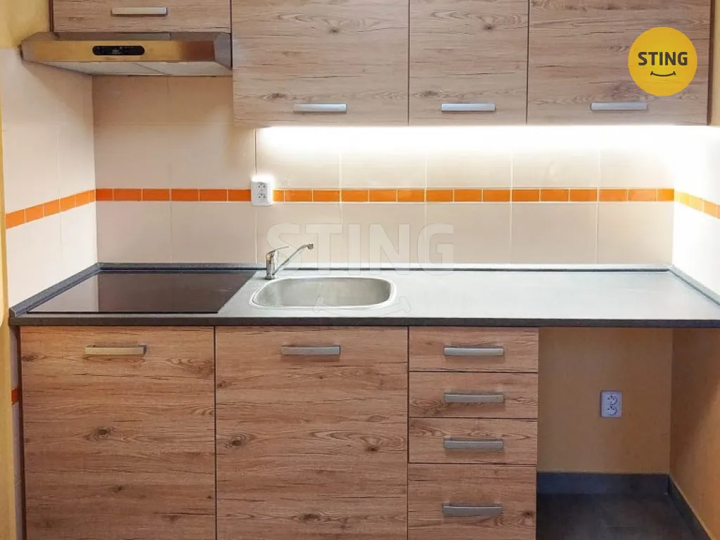 Byt má praktickou dispozici – z obývacího pokoje je vstup do kuchyně i ložnice. V předsíni se nachází vestavěná šatní skříň. Koupelna s WC je částečně zrekonstruovaná, v obkladech, s novou vanou. Kuchyň je vybavena kuchyňskou linkou s indukční varnou deskou, digestoří a špajzem.