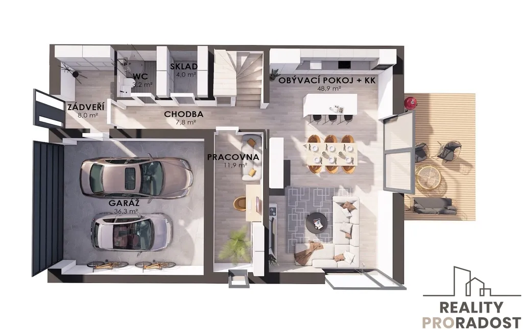 Garáž pro dvě auta: 36,3 m²
