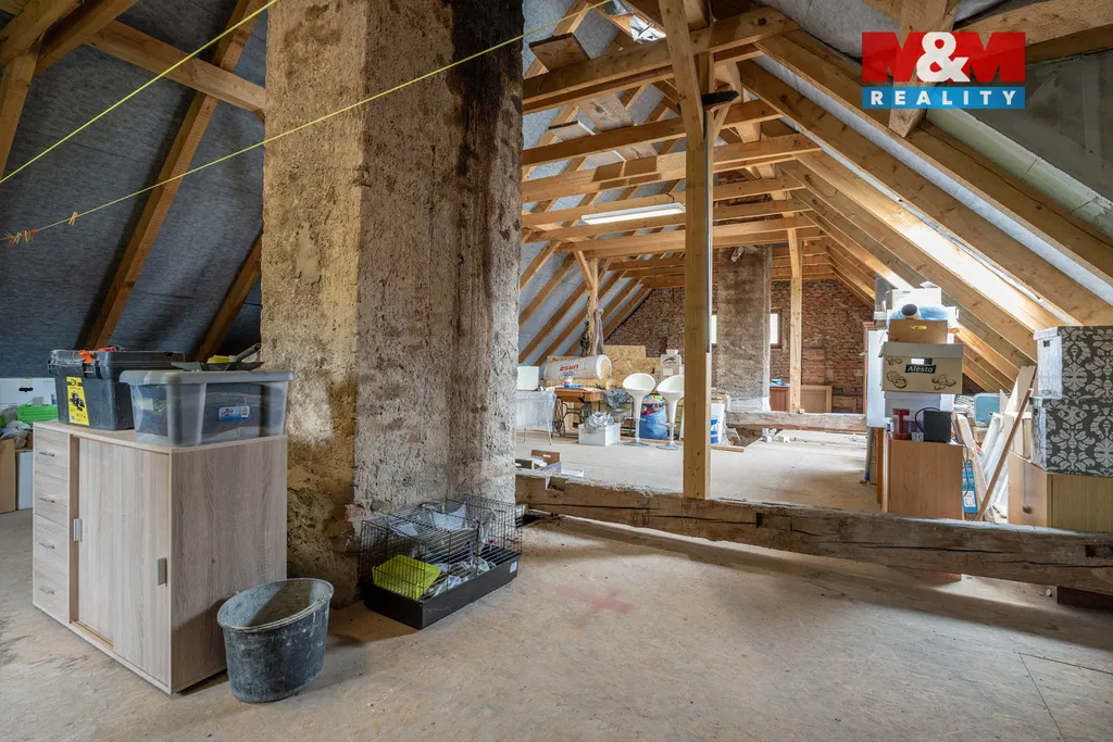 Nabízíme Vám ke koupi nájemní dům s užitnou plochou 264 m², který se nachází v obci Velemín. Nemovitost je vhodná jako investiční příležitost, v domě jsou již vybudovány dvě samostatné bytové jednotky a prostorná půda je připravena k vybudování třetí bytové jednotky. V přízemí se nachází jednotka o dispozici 4+1 s koupelnou, vytápěná plynovým kotlem s možností přitápění krbovými kamny. Má vlastní podružné měření energií a díky dispozici je možné ji využít i pro podnikání ordinace, kancelář, provozovna. V patře najdete další bytovou jednotku 5+kk, kterou využívají současní majitelé. Dispozice zahrnuje prostorný obývací pokoj s kuchyňským koutem, ložnici a další pokoje. Z obývací části je vstup na příjemnou terasu ideální k posezení u kávy. K domu náleží garáž, dílna a udržovaná zahrada se studnou na obecním pozemku vhodnou k zalévání. Na zahradě se nachází klidné zákoutí, které poskytuje místo k odpočinku. Pro více informací volejte makléře. Financování zajistíme.