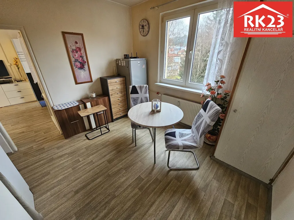 Prodej bytu 1+1 (dříve 2+1) s lodžií v Nejdku na ulici Okružní, který je umístěný v 5. patře bytového domu s výtahem.