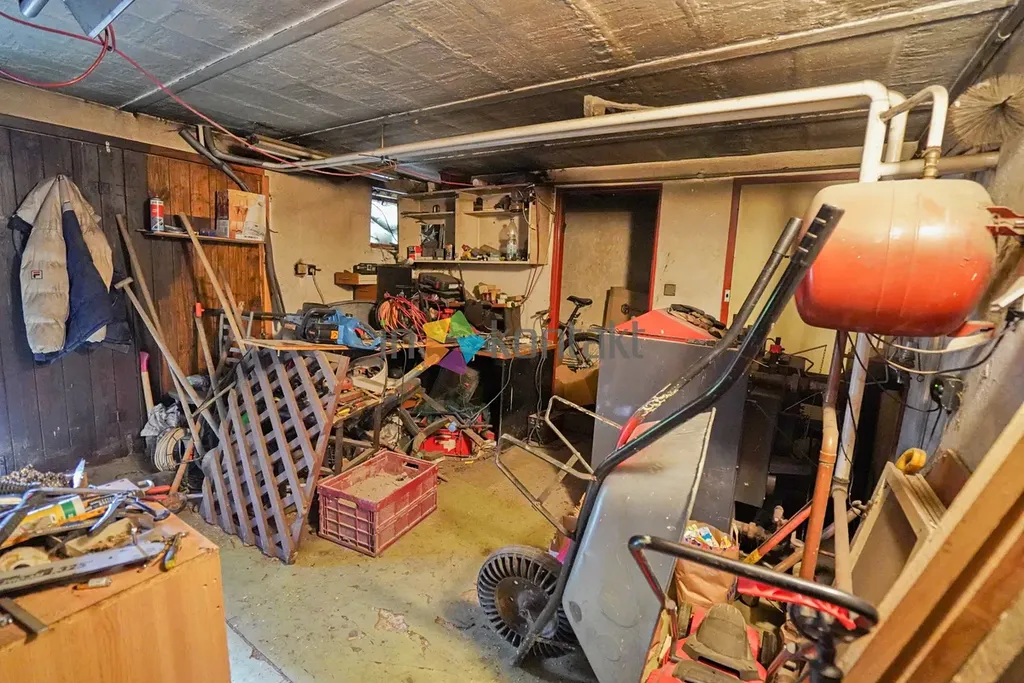 Suterén slouží jako garáž a dílna/sklad; kotel na tuhá paliva zajišťuje ústřední vytápění, ohřev vody elektrickým bojlerem. Odpady jsou svedeny do jímky. Dřevěná zdvojená okna orientovaná na SV/JZ propouštějí příjemné světlo během celého dne.