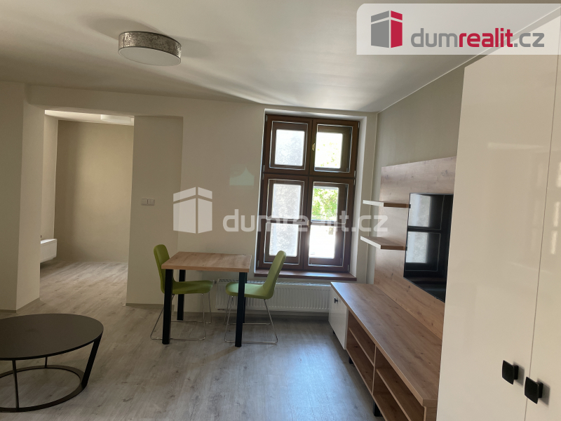 Dumrealit.cz Vám zprostředkuje pronájem celkově zrekonstruovaného a kompletně zařízeného bytu s dispozicí 1+kk+ šatna a podlahovou plochou 49m² umístěného v centru města Opavy. Tento luxusní byt je umístěn ve 2.NP cihlové budovy a sestává z předsíně (8,25m²), koupelny se sprchovým koutem a WC (6,12m²), obývacím pokojem s kuchyní (31,74m²) a šatnou (3,05m²). Byt je kompletně vybaven odkládací stěnou, šatními skříněmi, kuchyňskou linkou s indukční deskou a el. troubou zn. Electrolux, odsávačem par zn. Mora a lednicí zn. Snaigé, jídelním stolem se 2mi židlemi, televizní stěnou s televizí zn. Samsung, křeslem a postelí s odkládacím stolkem. Vytápění zajištěno vlastním elektrickým kotlem. Měsíční nájemné činí 17.500,- Kč + záloha 3 . 500 Kč spotřeba vody a tepla . Zálohy na spotřebu elektrické energie si stanoví nájemník sám po přepisu smlouvy o dodávkách. V bytě je internetové připojení (toto není součástí nájmu). Vratná kauce je ve výši 2 měsíčních nájmů včetně služeb . Jednorázová odměna za zprostředkování činí nájem jeden. V případě zájmu je možnost parkování ve dvoře za domem za 2 000,- Kč / měs. Každé další parkovací místo pak 1.500,- Kč / měs.