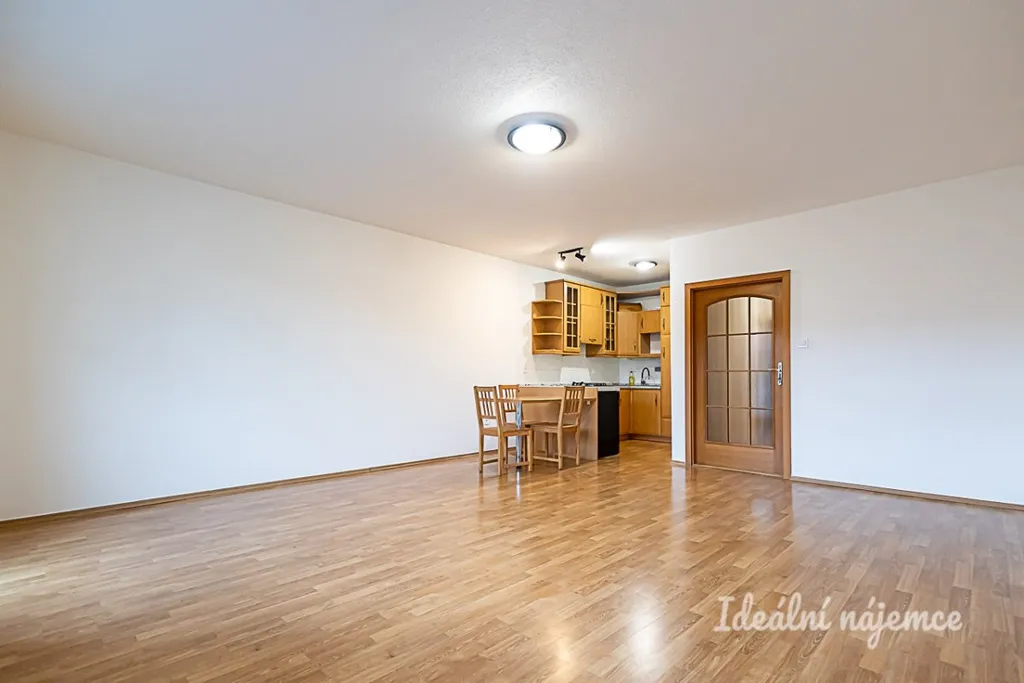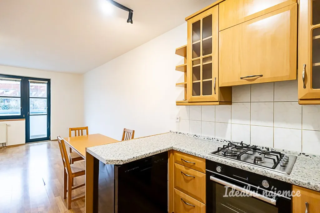 Byt je nabízen částečně vybavený, což dává možnost doladit si interiér podle vlastního vkusu. Kuchyně je vybavena lednicí s mrazákem, elektrickou troubou, sporákem a také disponuje dostatečným prostorem pro další malé spotřebiče. Kuchyň je součástí prostorného obývacího prostoru, kde se nachází i prostorný, zasklený balkon.