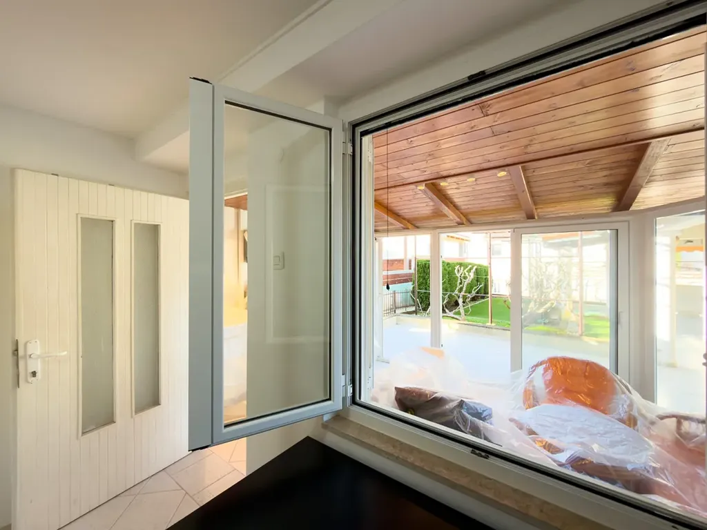 Prostor je velmi příjemný, propojený se zahradou, orientovaný na jih – ideální k celoročnímu odpočinku.