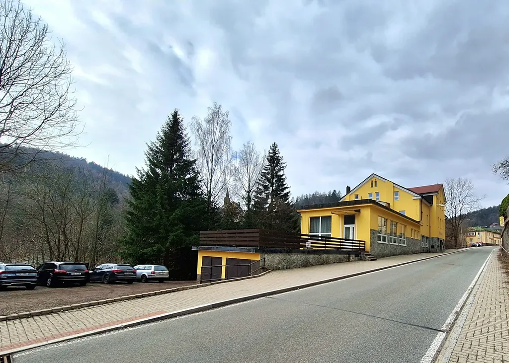 Prodej budovy hotelu v Janských Lázních s pozemkem (1569 m2), Lázeňská ulice, 450 m od Lázeňské kolonády.
