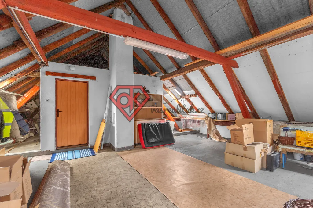 - rozlehlý sklep s vysokým stropem (vhodné na autodílnu, truhlárnu,...)