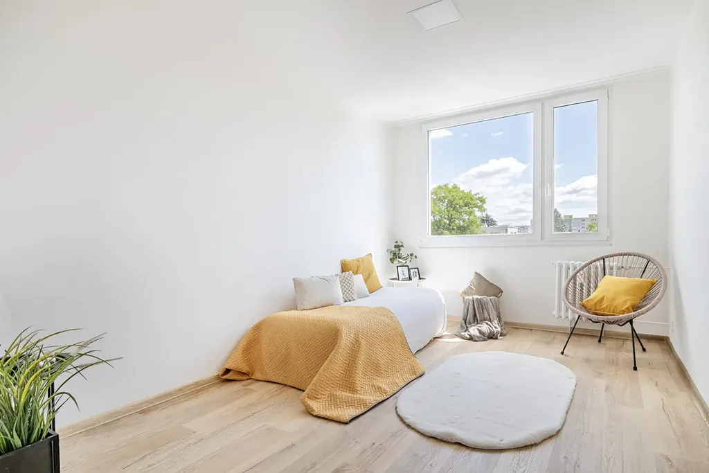 Nabízíme k prodeji prostorný a světlý byt v osobním vlastnictví o dispozici 4+kk s lodžií a celkové výměře 96 m². Byt se nachází ve 2. patře malého, komorního panelového domu po revitalizaci v klidné a vyhledávané lokalitě Praha 10 – Petrovice, ulice Morseova.