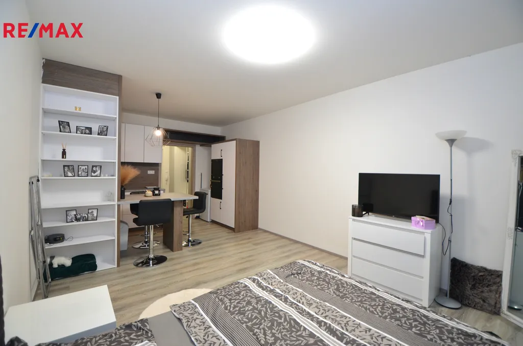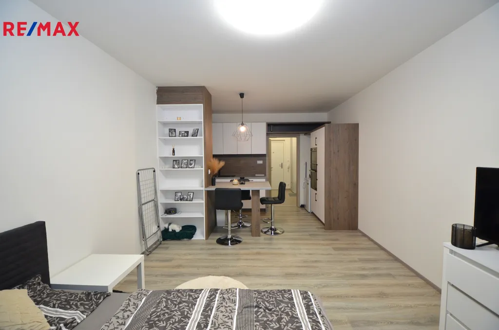 Nabízíme Vám k pronájmu příjemný byt o dispozici 1+kk o výměře cca 33,8 m2 s komorou a vlastním venkovním parkovacím stáním. Byt se nachází v bytovém domě ve velmi žádané lokalitě na ulici Aloise Rašína v blízkosti nákupního centra Olomouc City. Tento byt se nachází v 3. nadzemním podlaží s výtahem z celkových 6 a skládá se z předsíně s velkorysým úložným prostorem, obývacího pokoje s kuchyňským koutem (kuchyňská linka s barovým pultem a vestavěným policovým regálem a vybavená indukční varnou deskou, elektrickou troubou, digestoří, myčkou a mikrovlnnou troubou) a koupelny se sprchovým koutem a toaletou. Byt se nabízí nevybavený. K dispozici je i komora o výměře cca 1,4m2 na patře. Vytápění a ohřev vody jsou zajišťovány dálkově. V ceně nájemného je možnost využívat vlastní venkovní parkovací stání před bytovým domem. Bytový dům se nachází v lokalitě s výbornou dopravní dostupností (dálnice, zastávky MHD) a také občanskou vybaveností (nákupní centrum, restaurace, základní škola, mateřská škola a další).