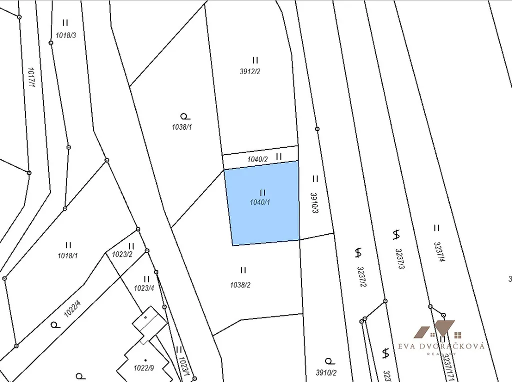 parcela č. 1040/1 – 404 m², nestavební, ideální pro využití jako zahrada