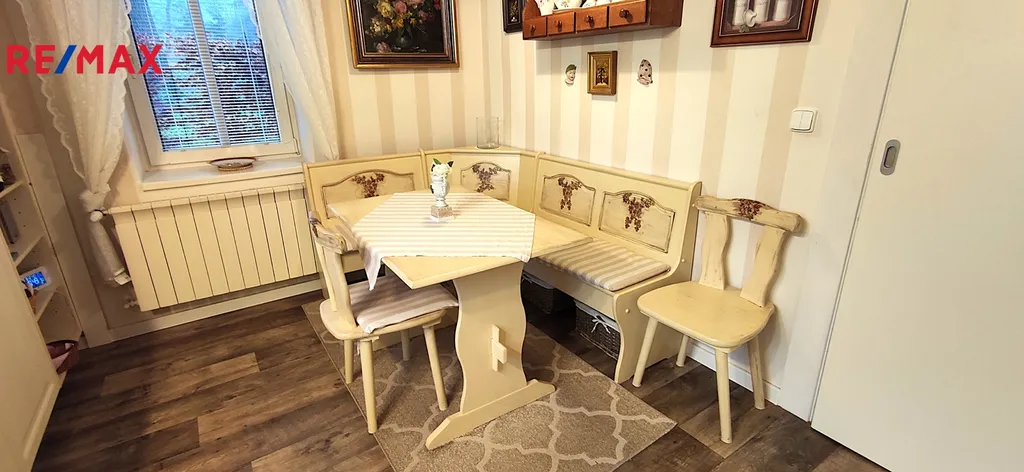 V přízemí je k dispozici prostorná kuchyně, obývací pokoj s kachlovými kamny, druhý velký pokoj s možností podnikání, samostatné wc, koupelna s vanou, saunou a šatnou. Všechny místnosti jsou pohodlně přístupné z prostorné chodby. Ve druhém nadzemním podlaží najdeme dětský pokoj s šatnou, prostornou ložnici se šatnou, menší pokoj pro hosty, pracovnu, samostatné wc a koupelnu se sprchovým koutem. VVše pohodlně přístupné z prostorné chodby. V domě jsou zachovány původní prosklené dřevěné dveře a zárubně, podlahy v pkojích jsou parketové, v chodbách nová dlažba.
