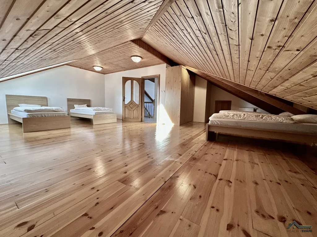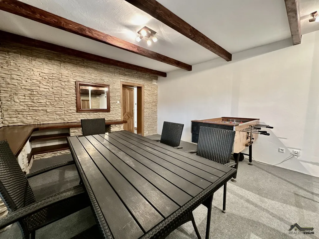 Nemovitost je kompletně vybavena, včetně kuchyňského náčiní, 14 postelí, peřiny, povlečení, sedací soupravy, 2x TV, stoly a židle, stolní fotbal, zahradní nábytek. Dále byla provedena investice do modernizace vířivé vany, bazénu, protiproudu, seřízení a výměna plastových oken, apod. Stačí si vzít osobní věci a můžete bydlet.