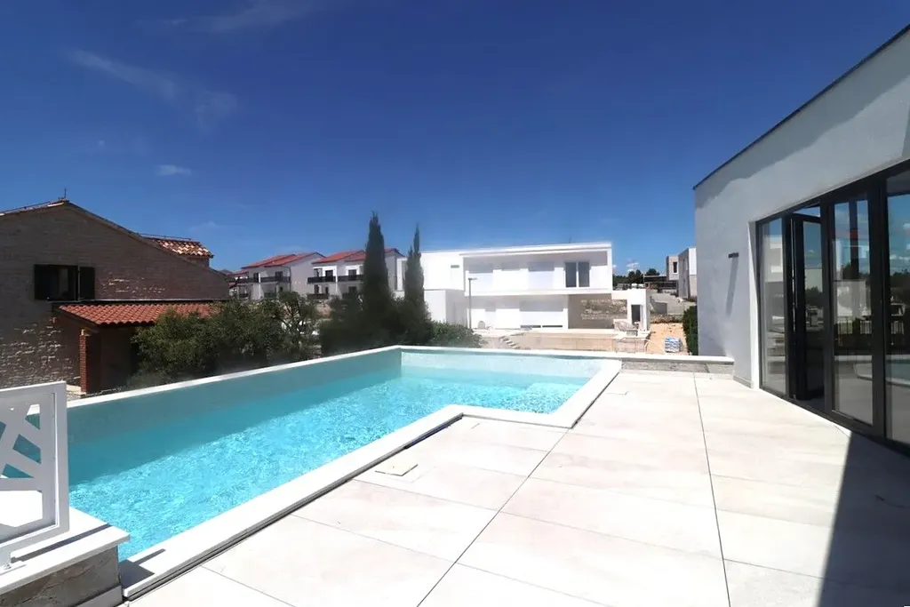 Dovolujeme si Vám nabídnout na prodej nový řadový dům s bazénem a dílčím výhledem na moře ve městě Vodice v Šibenické oblasti v Chorvatsku.