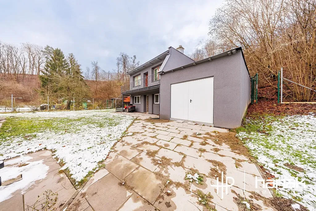 Na pozemku se dále nachází stavba s garáží, místností a další místností v patře, která je vhodná k přebudování na ateliér či kancelář.