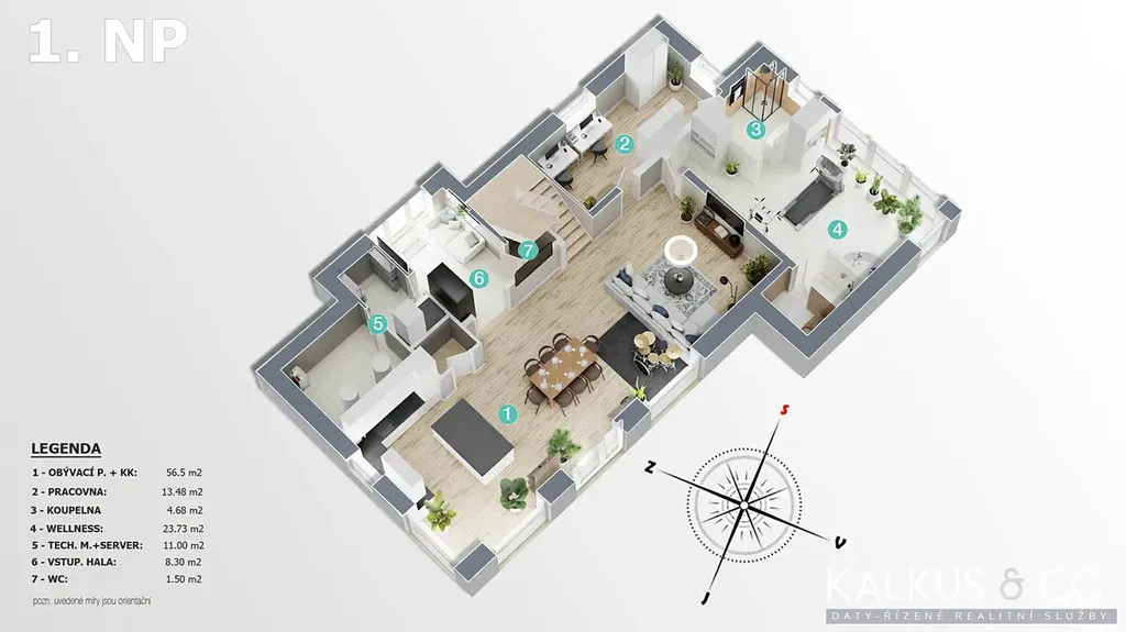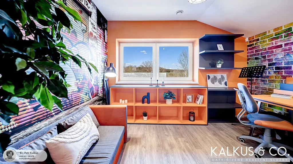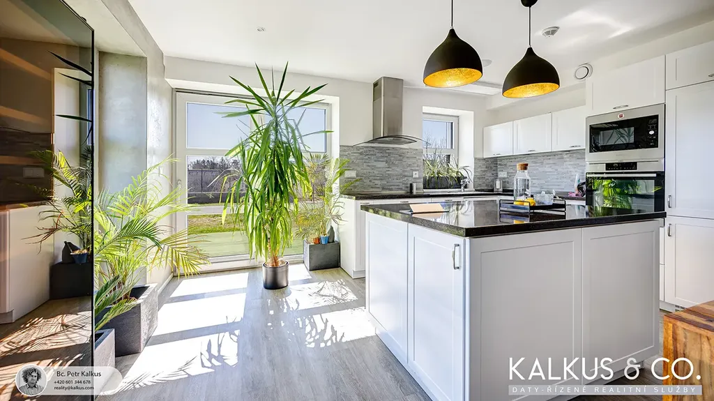 S dispozicí 6+kk a užitnou plochou 219 m² na rovinatém pozemku o výměře 1 530 m2 nabízí tento dům zázemí i pro větší rodinu. Tři koupelny, wellness místnost s přípravou pro saunu, vysoké stropy a otevřený prostor napříč dvěma podlažími vytvářejí dojem volnosti a vzdušnosti. Děti mají v patře své soukromí, přesto galeriový průhled z horní chodby do obytného prostoru zajišťuje, že rodina zůstává v kontaktu – doslova i symbolicky.