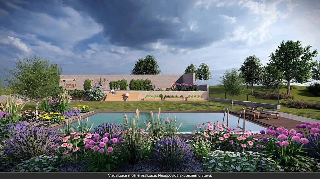 Zahrada obklopuje dům jako přirozené pokračování interiéru. Ocení ji nejen děti, ale i nadšenci do pěstování – díky rozloze a orientaci je připravena na sezónní rytmus zeleniny i relaxace. Samotný provoz domu se řídí přes inteligentní systém LOXONE, který automatizuje mimo jiné osvětlení, vytápění, venkovní žaluzie, přístupy, zabezpečení, multimédia i zavlažování. Dům se přizpůsobuje dennímu rytmu domácnosti a dokáže si i „zavolat pomoc“ – například při aktivaci požárních čidel nebo při simulaci přítomnosti při odjezdu na dovolenou.
