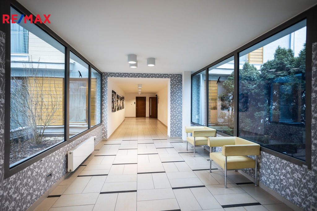 Společné prostory domu jsou pečlivě udržované. K dispozici je společná kočárkárna a správa domu funguje dobře.