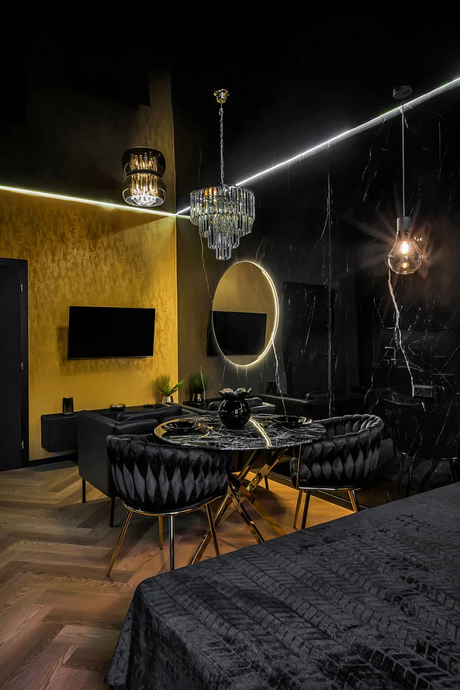 Byt po kompletní luxusní rekonstrukci vznikl jako designový koncept inspirovaný moderními evropskými interiéry. Každý detail byl pečlivě navržen tak, aby celek působil elegantně, kultivovaně a nadčasově.